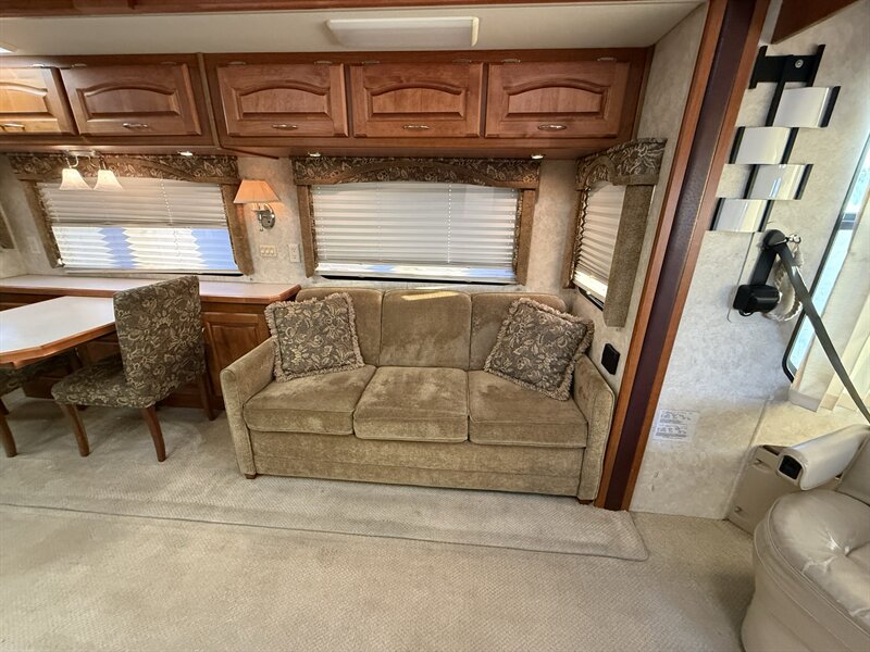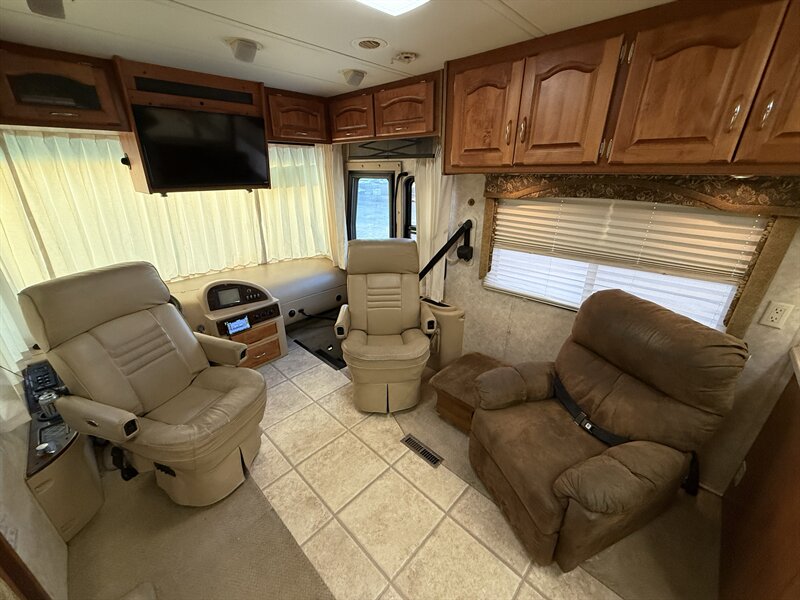 This 2007 Holiday Rambler Neptune 37PBD is a premium diesel pusher built on the Roadmaster RR4R chassis with the proven Cummins 5.9L ISB (325HP) and Allison 6-speed transmission. At just 37’6” long, it’s easy to maneuver while still offering a full residential layout with two slide-outs, solid cabinetry, and plenty of storage.