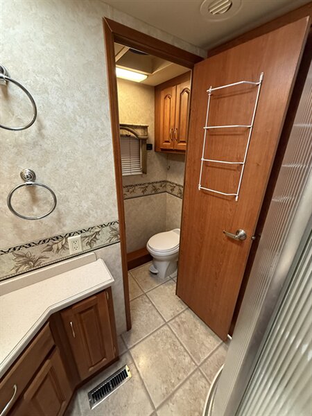 This is a strong, reliable, well-built diesel pusher that’s ready to travel anywhere — and tow what you need to bring with you.