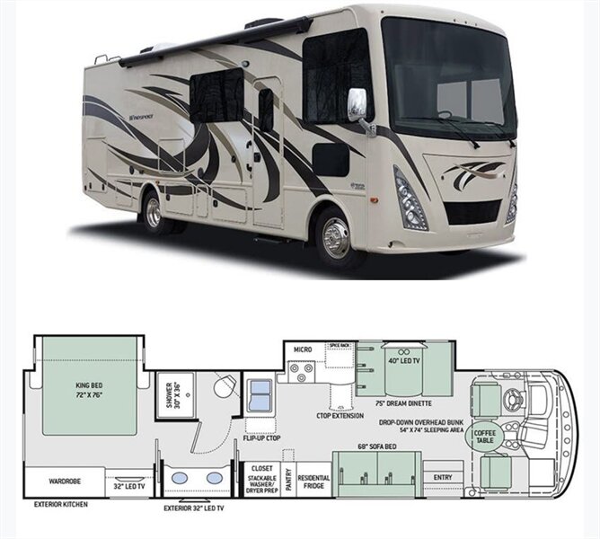 The 2017 Thor Windsport 34P is a luxury Class A motorhome designed for travelers who want space, comfort, and modern amenities. With its expansive living area, large slide-outs, and premium finishes, this coach feels like a home on wheels. Features include a fully equipped kitchen, spacious master bedroom, abundant storage, and advanced driving technology for a smooth ride. Ideal for long trips or full-time RV living, the Windsport 34P combines style, convenience, and performance in one beautiful package.